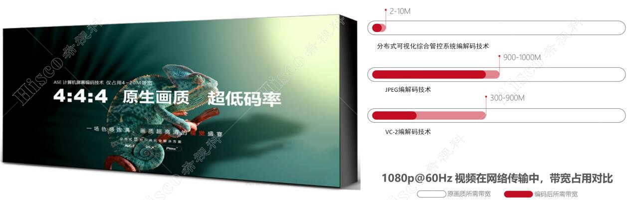 分布式可视化管控系统仅需带宽 2-10M 即可传输一路 2K(1080P)的原图画质视频,4K 原图画质不超过 20M,突破高质量信号传输链路高带宽瓶颈,实现在一条千兆网络上可同时传输 50 路 4:4:4 高质量信号,纳秒级同步,轻松跨地区、多区域互联互通。