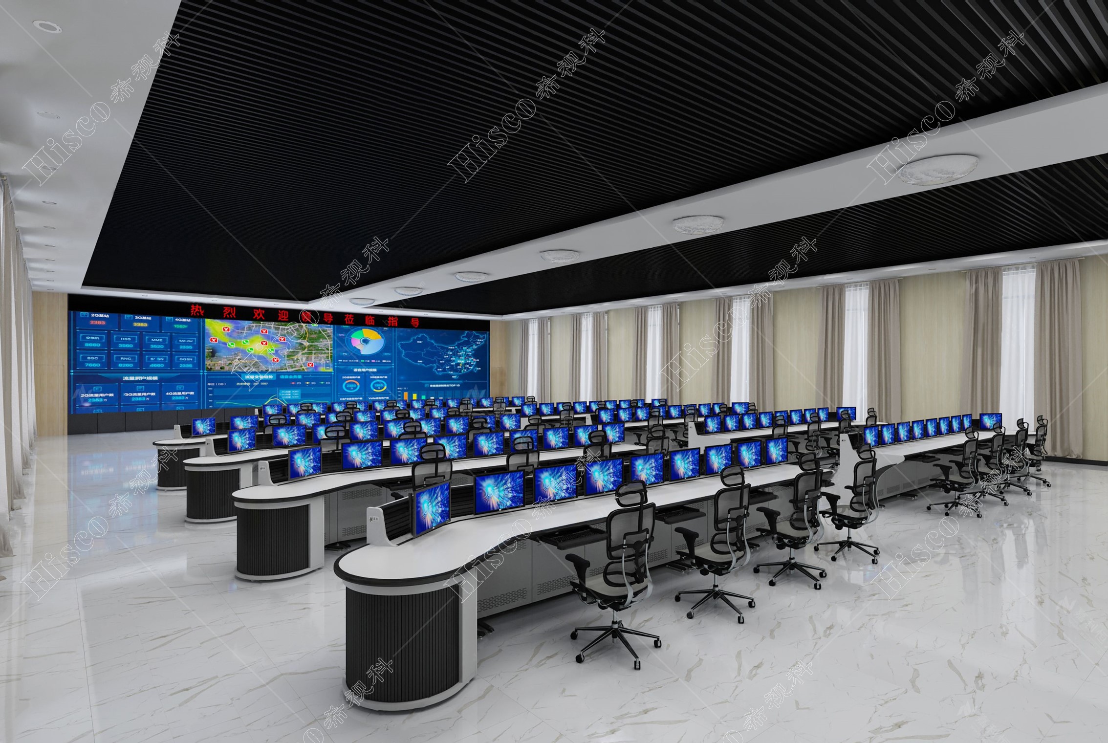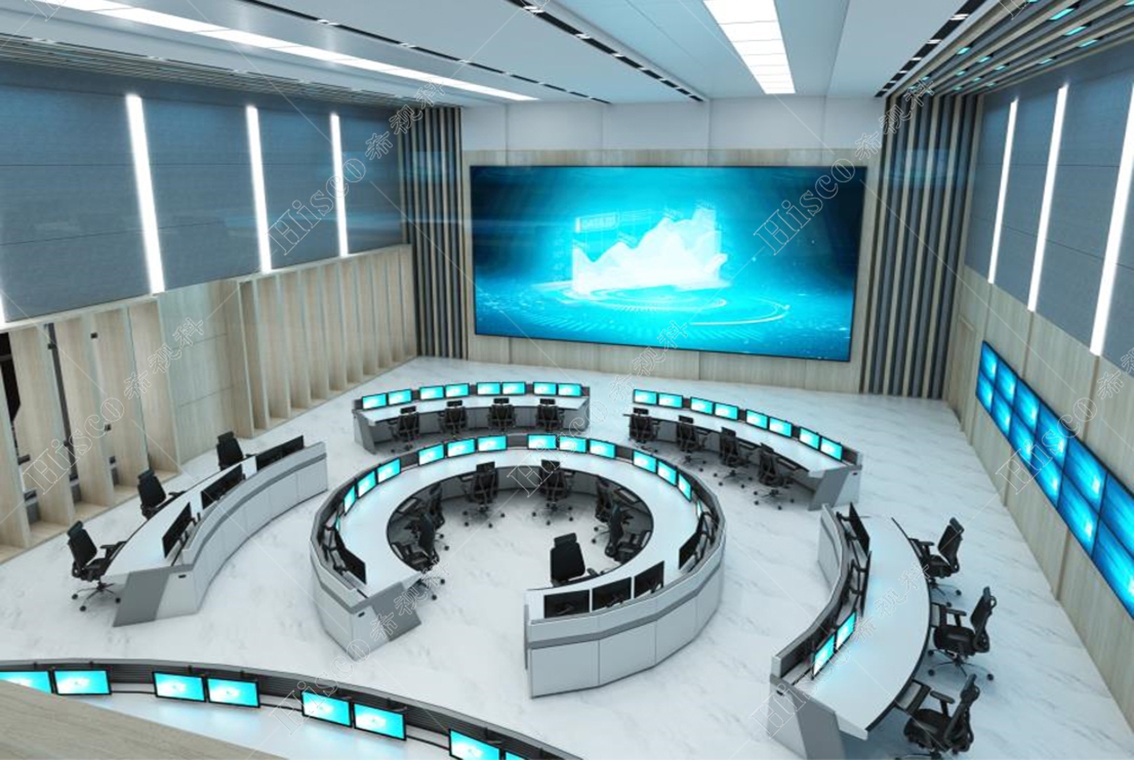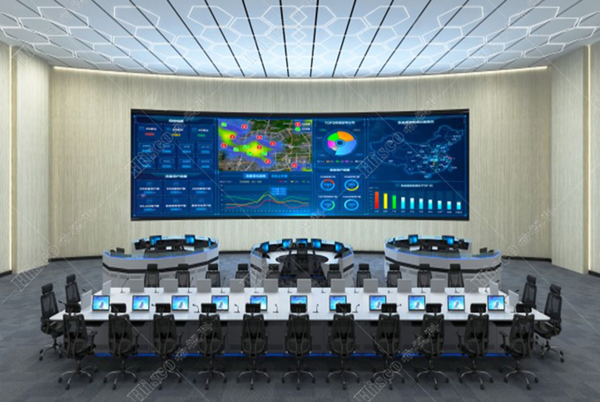 采用行业的新技术,打造一个“看得清、调得快、全方位”的平战结合的指挥中心,同时满足工作会议、成果展示、学术交流等使用需求。