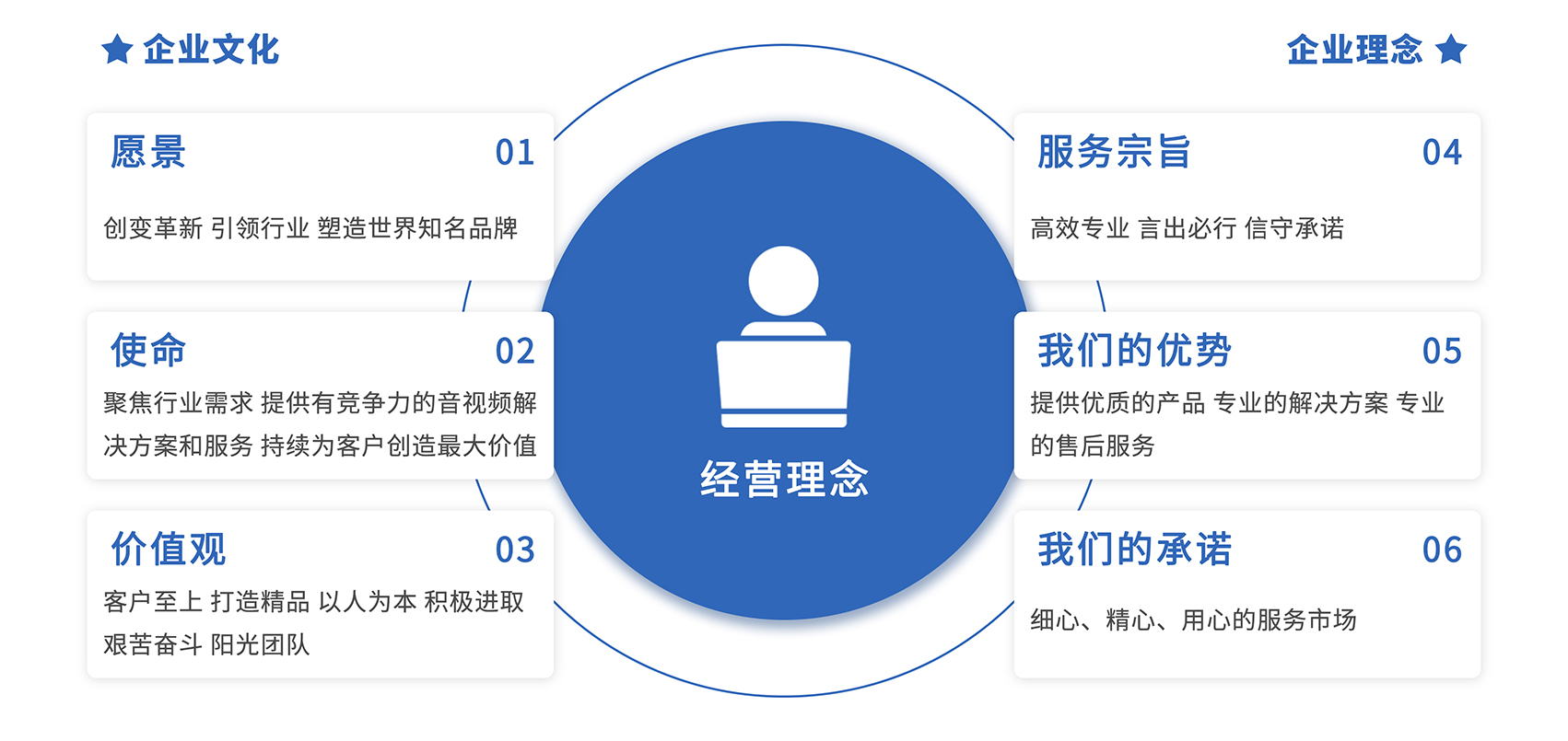 公司致力于把音视频带入智慧教育,公检法,政企单位,文旅,智能化建筑,智慧医疗,国家应急、能源调度等领域,构建音视频的智能世界:让音视频设备人性化、智能化、平台化,成为音视频智能世界的基础;为行业提供最强有力的产品和解决方案,让智能无所不在;让音视频行业变得更加高效、生机勃勃;让用户得到最好的场景化体验和个性化服务,将音频、视频、可视化操作、平台软件实现技术融合,开创整体音频融合解决方案新应用,成为行业领头羊。